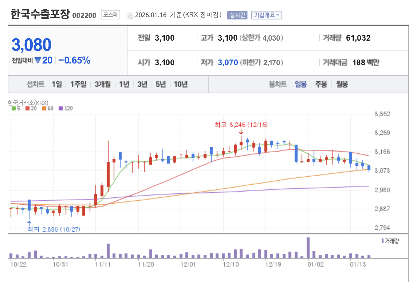 - 종가: 3,080원