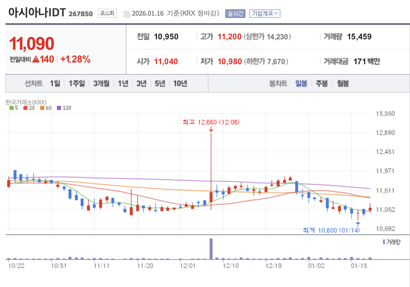 📌 1. 아시아나IDT 현재 주가 흐름